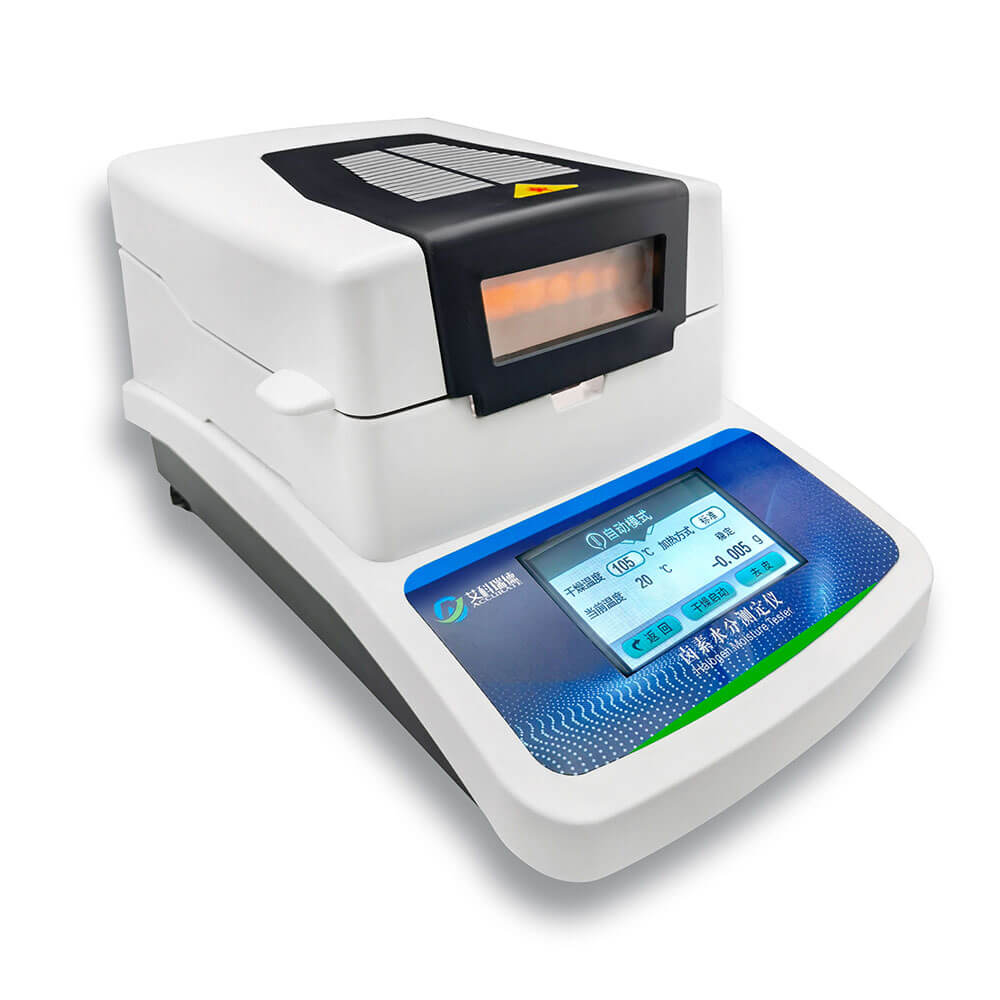 艾科瑞德牌全自動(dòng)快速鹵素水分測(cè)定儀,采用熱解重量原理,依托自身精準(zhǔn)稱重系統(tǒng),在測(cè)量樣品過程中,實(shí)時(shí)顯示樣品重量、樣品水分含量和固含量,干燥完成后,測(cè)試結(jié)果鎖定顯示且可存儲(chǔ)于儀器中。同時(shí)測(cè)試過程中可實(shí)時(shí)顯示烘干時(shí)間、烘干溫度、加熱模式等。